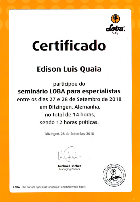 A Recuperadora Aplic Já é certificada pela empresa LOBA, umas das melhores empresas especializada em produtos de limpeza de pisos de madeira.