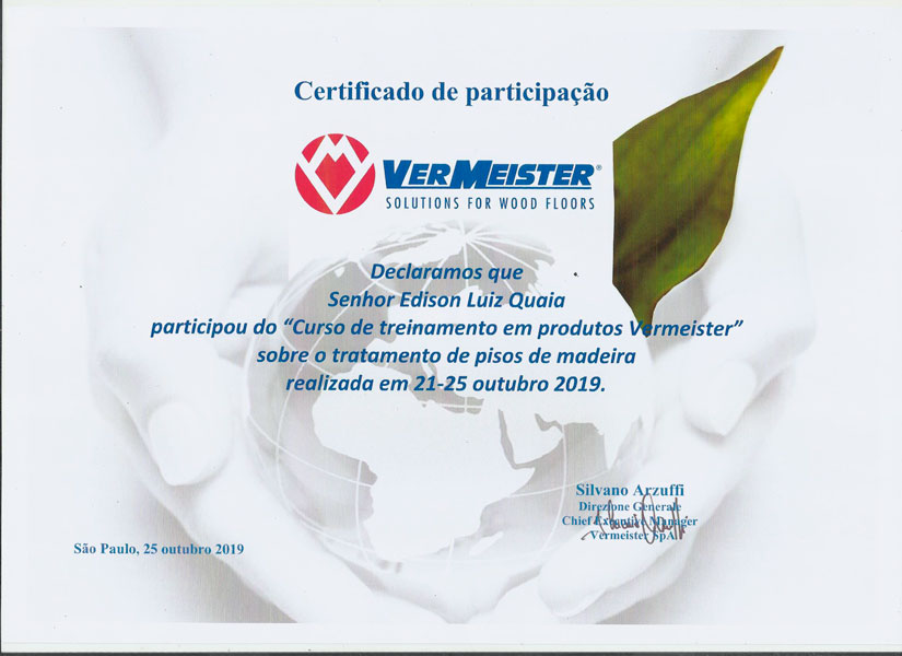 A Recuperadora Aplic Já é certificada pela empresa VerMeister, umas das melhores empresas especializada em produtos de tratamento de pisos de madeira.